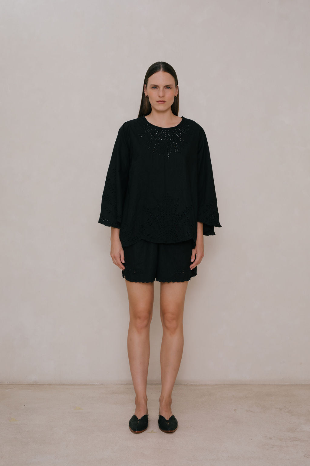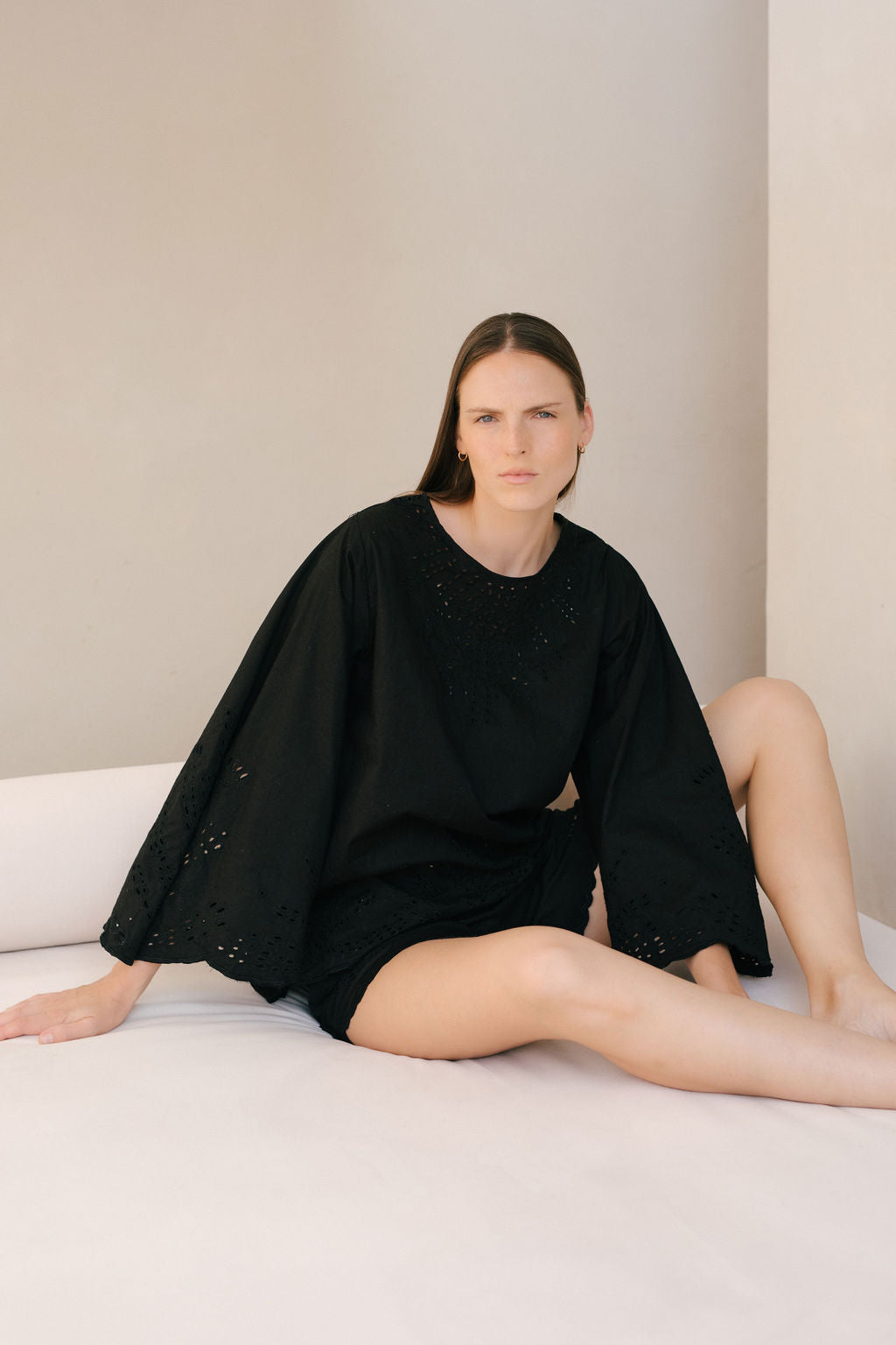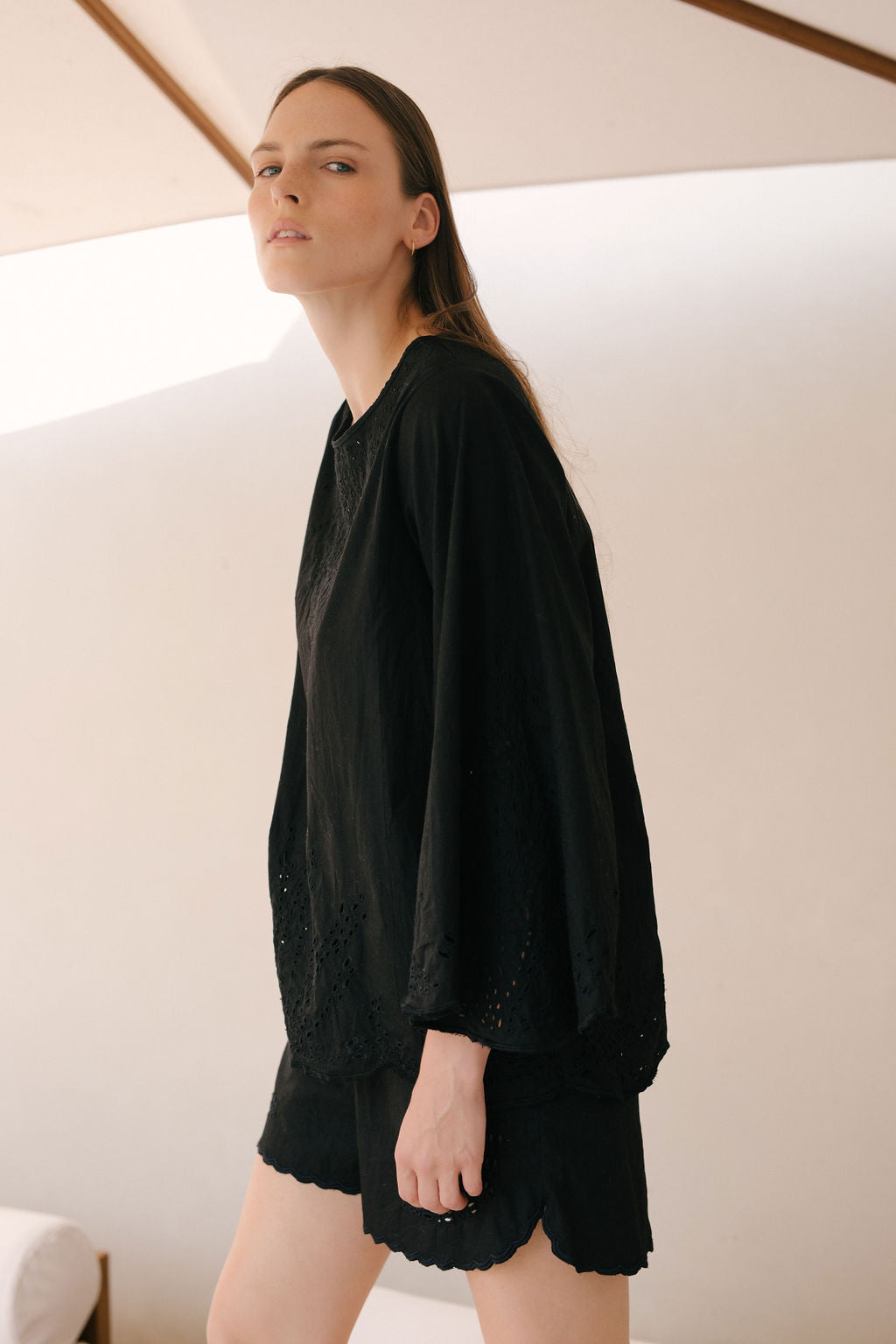 Round neck tunic with 3/4 sleeves. Inspired by the sunlight at dawn.