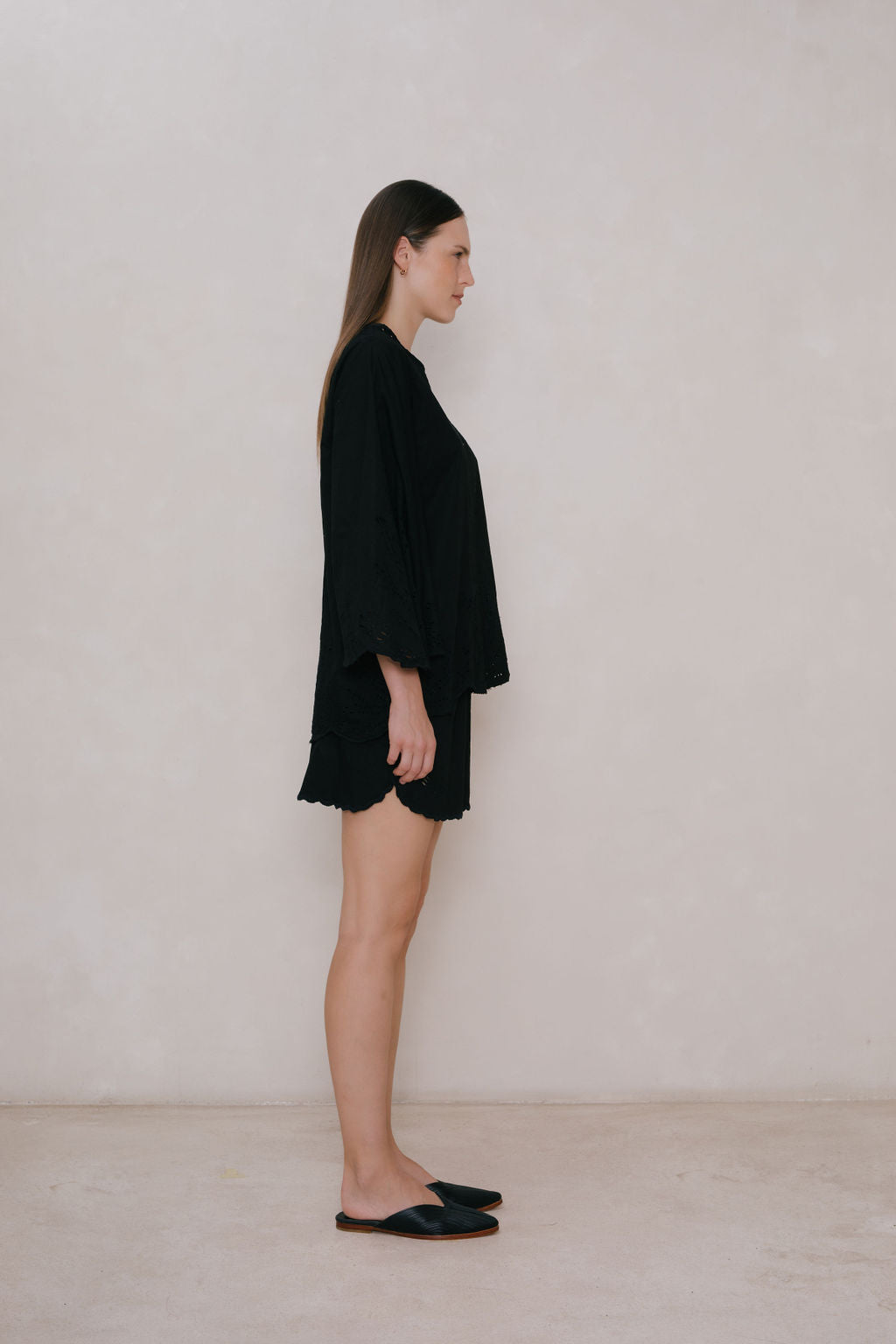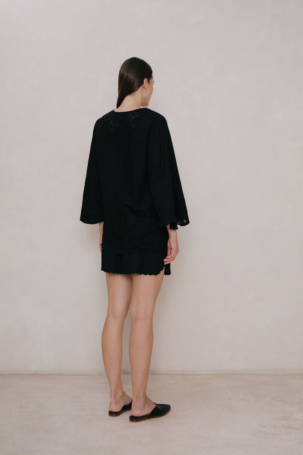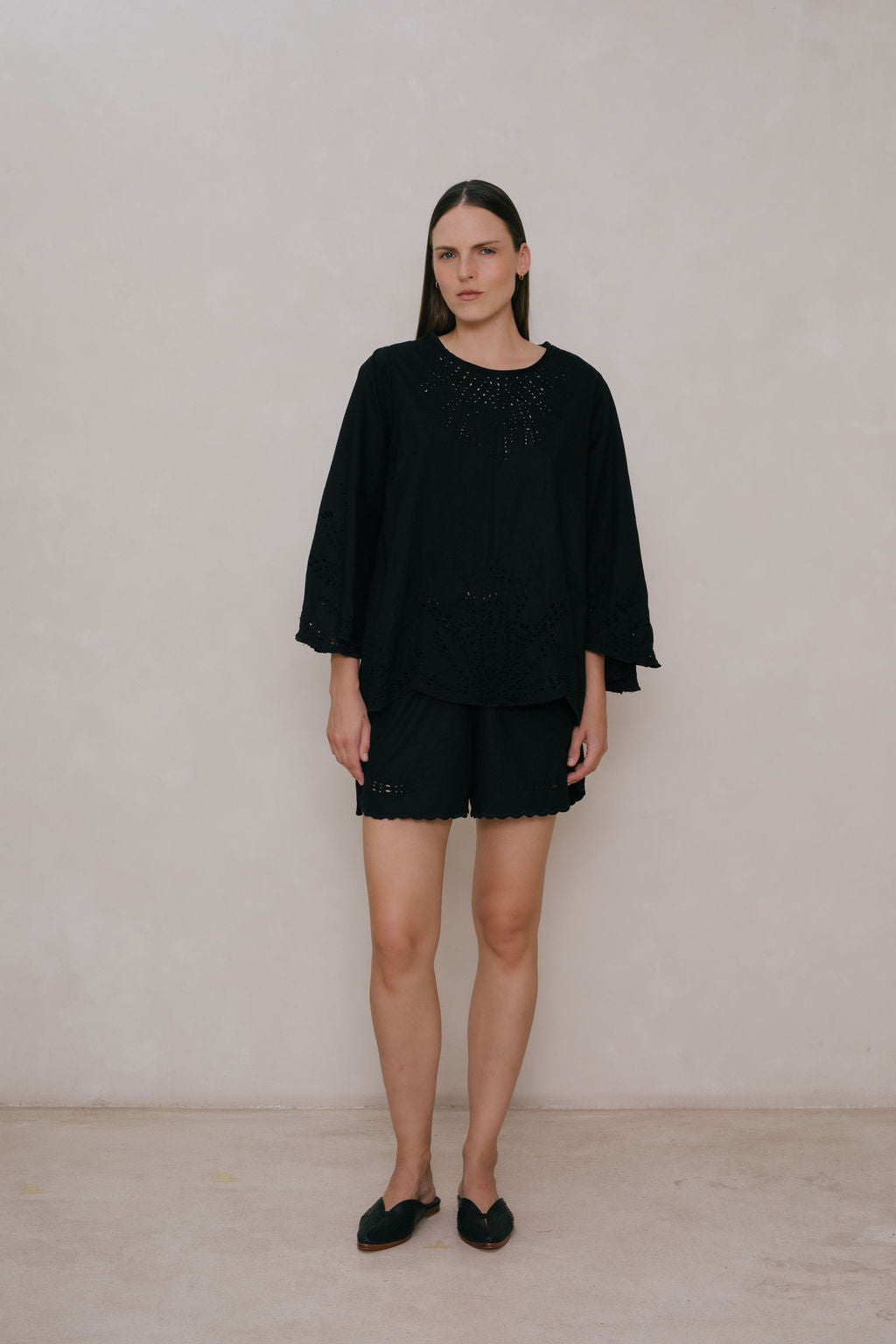 Round neck tunic with 3/4 sleeves. Inspired by the sunlight at dawn.