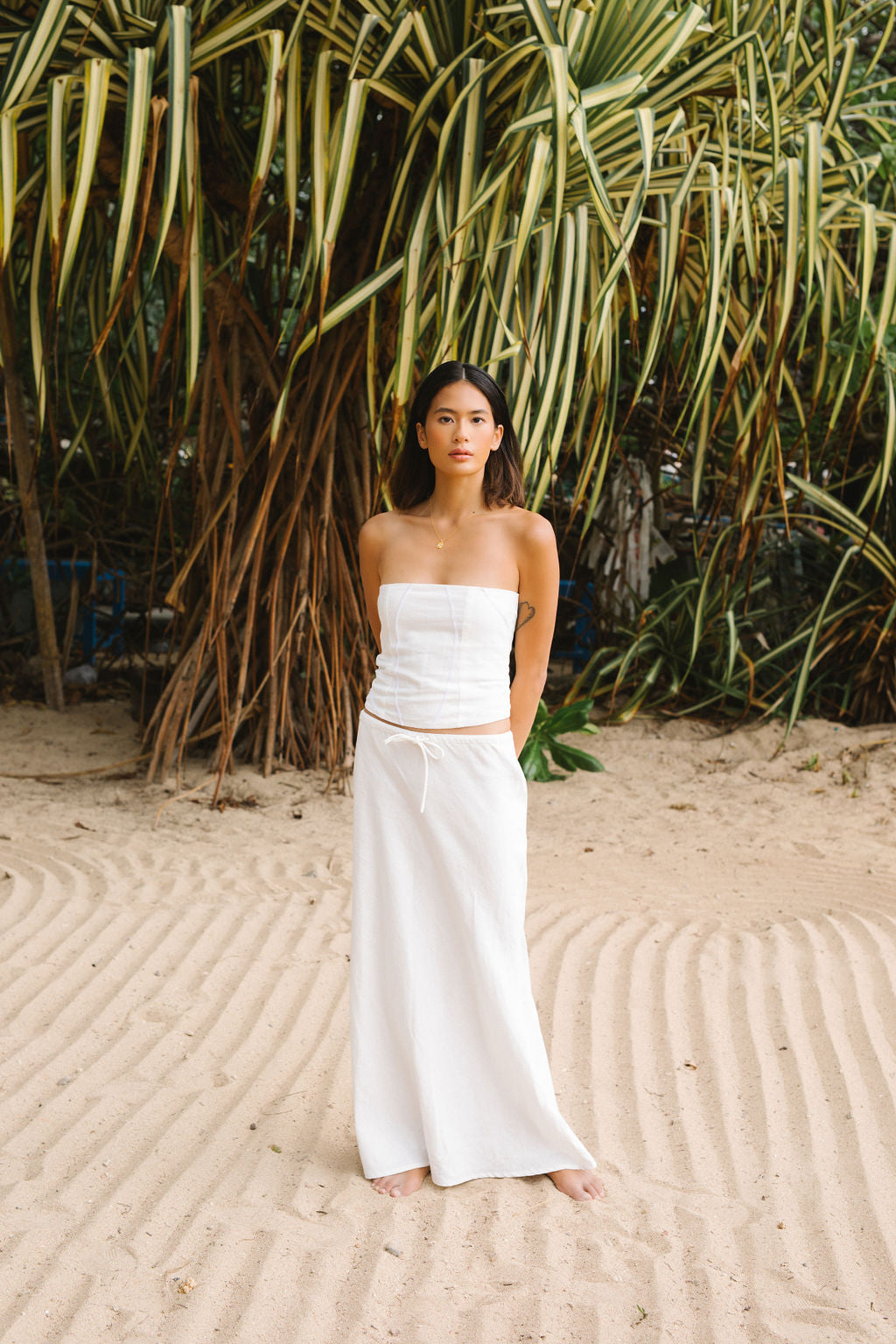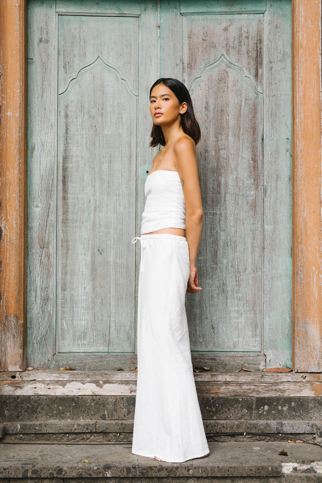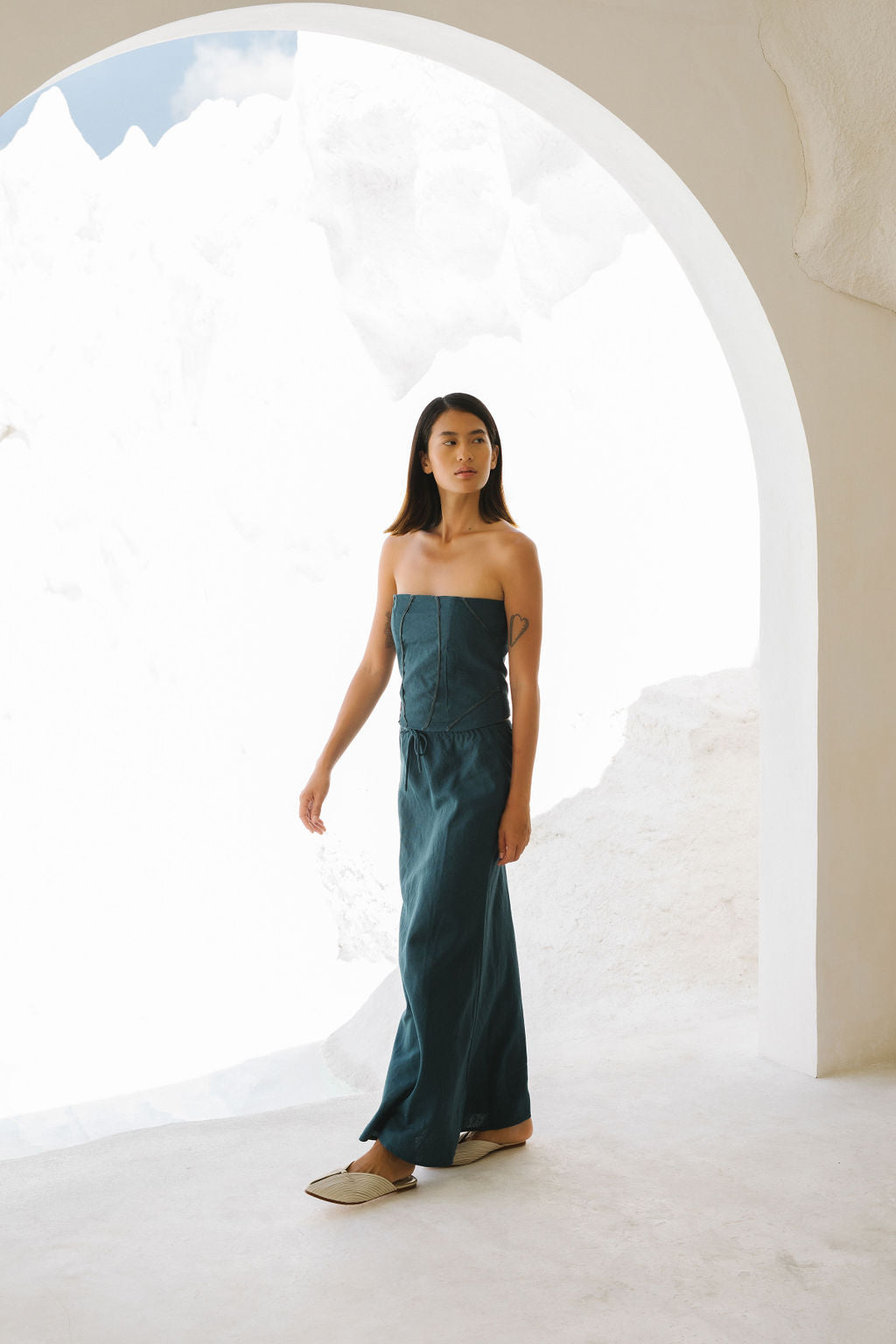 Pair the Linen Geometry Bustier with Linen Bias Skirt / Linen Straight Pant / Slit Wide Pants for a matching set.