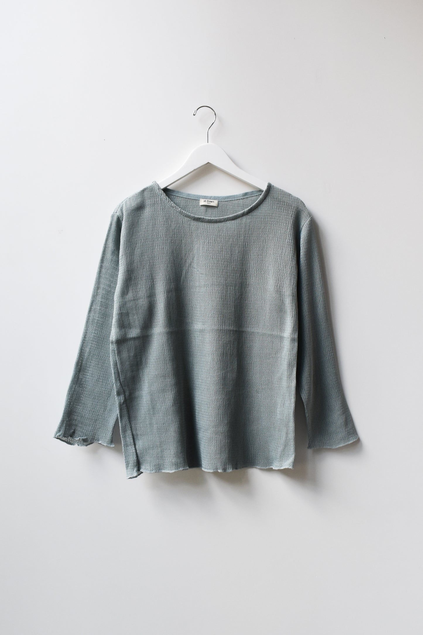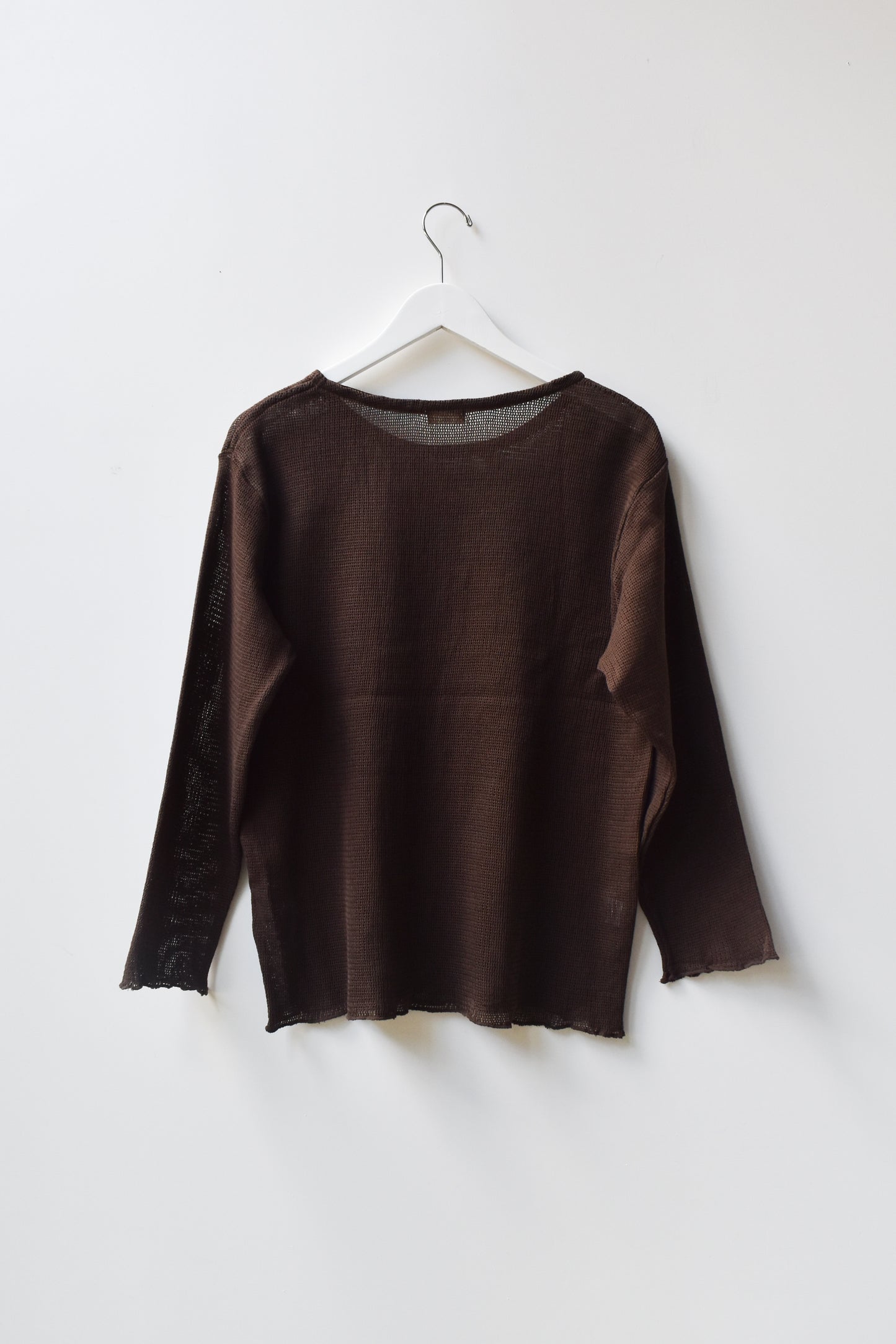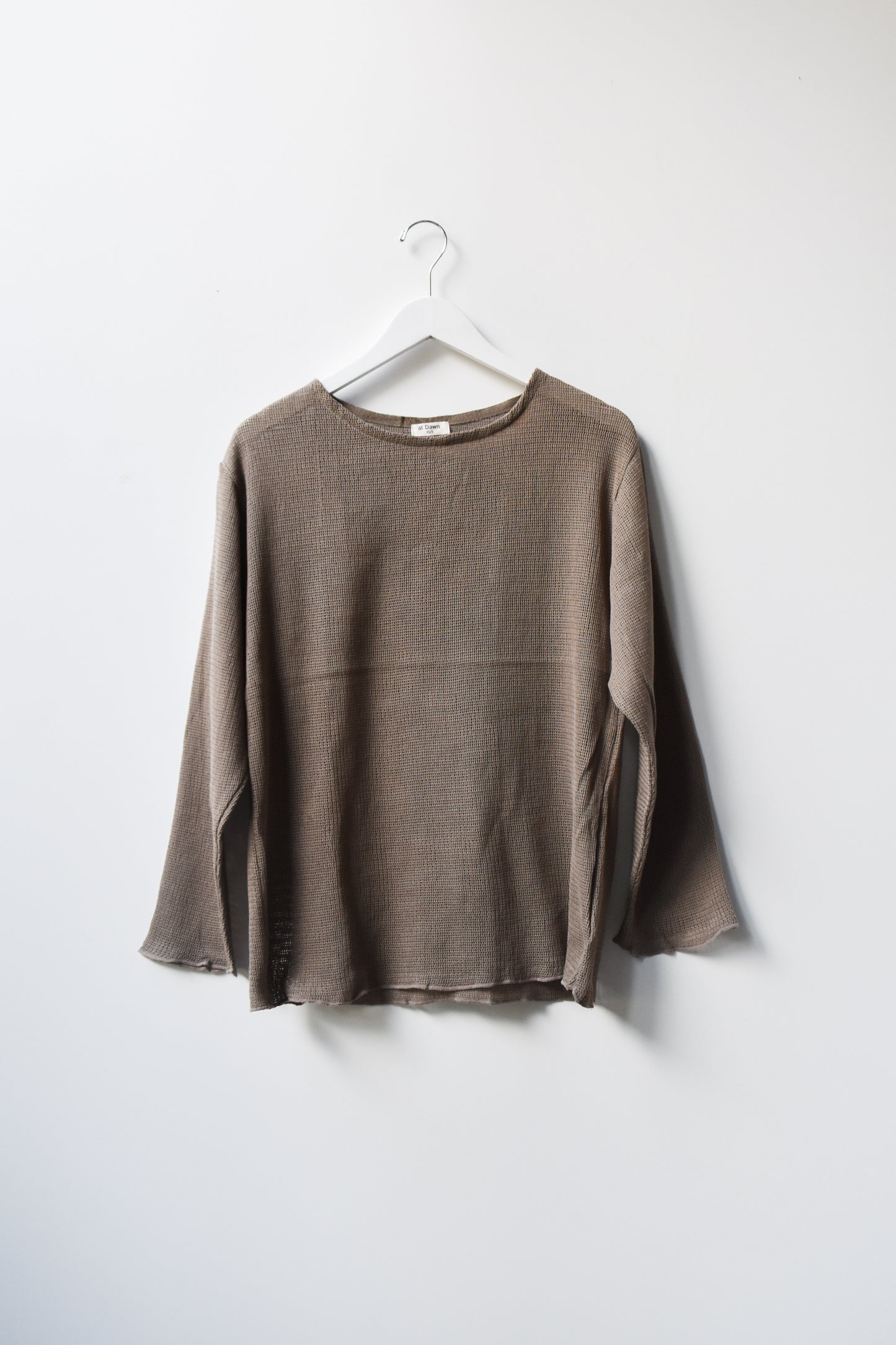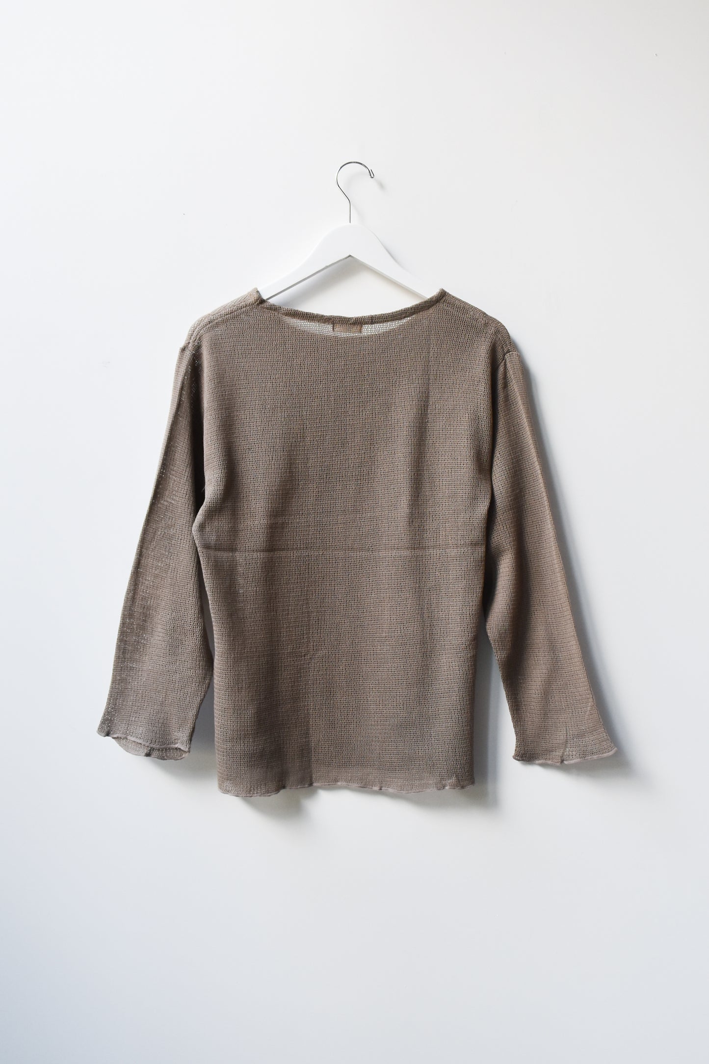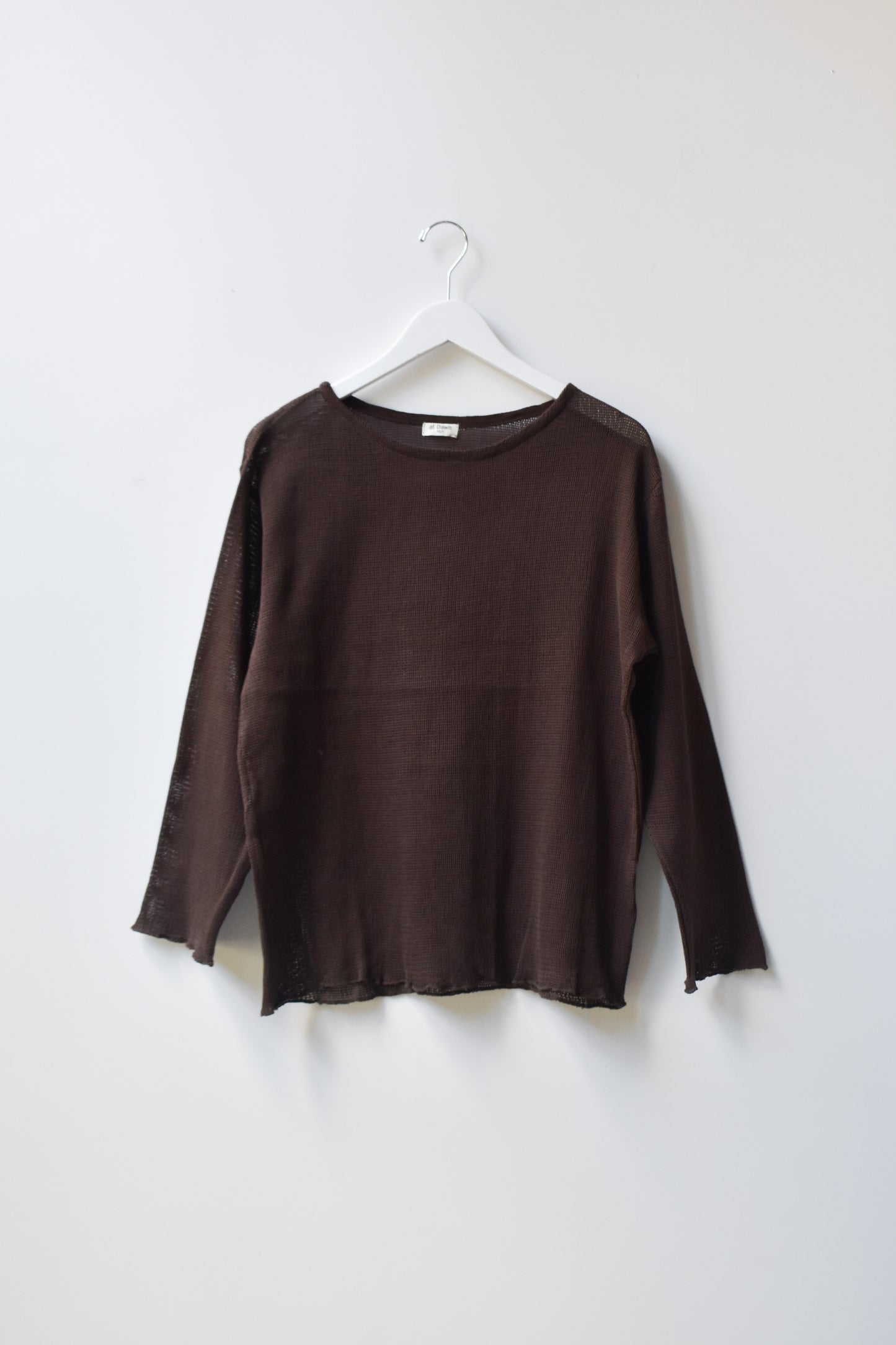 Oversized boatneck long sleeve top, made with sheer mesh cotton knit.