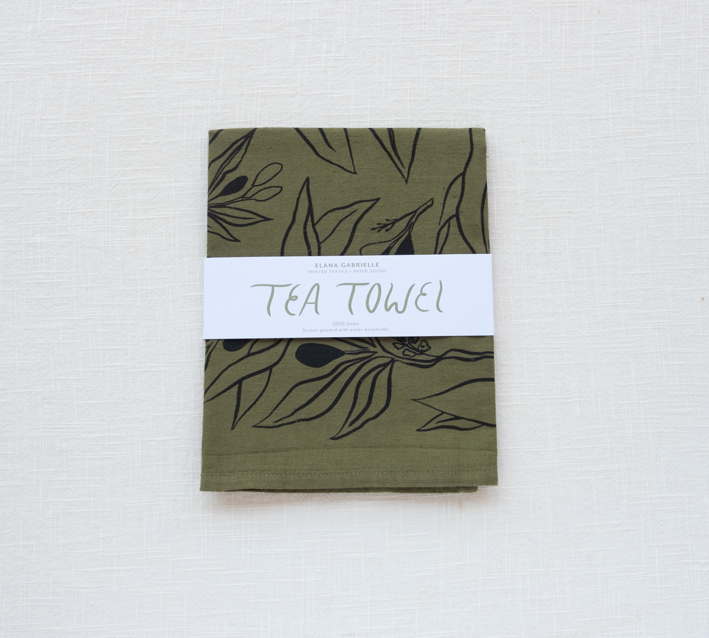 The Olives Tea Towel is inspired by ancestral ways, tending the earth, and was created as a symbol of peace. This kitchen towel is dyed with earth-friendly pigment and screen printed with water-based inks on heirloom-quality flax linen fabric. I love this linen for its lovely tactile feel, soft supple texture, and high absorbency. It has a wide variety of uses and adds some beauty to your space. Perfect for garden parties, rising dough, hung on an oven door, under serving dishes, and so much more. I source this fabric from a small family-owned business in Lithuania, chosen specifically for their traditional and ethically produced flax. This soft and sturdy linen inhibits the growth of bacteria and microflora and is a wonderful, sustainable home textile.