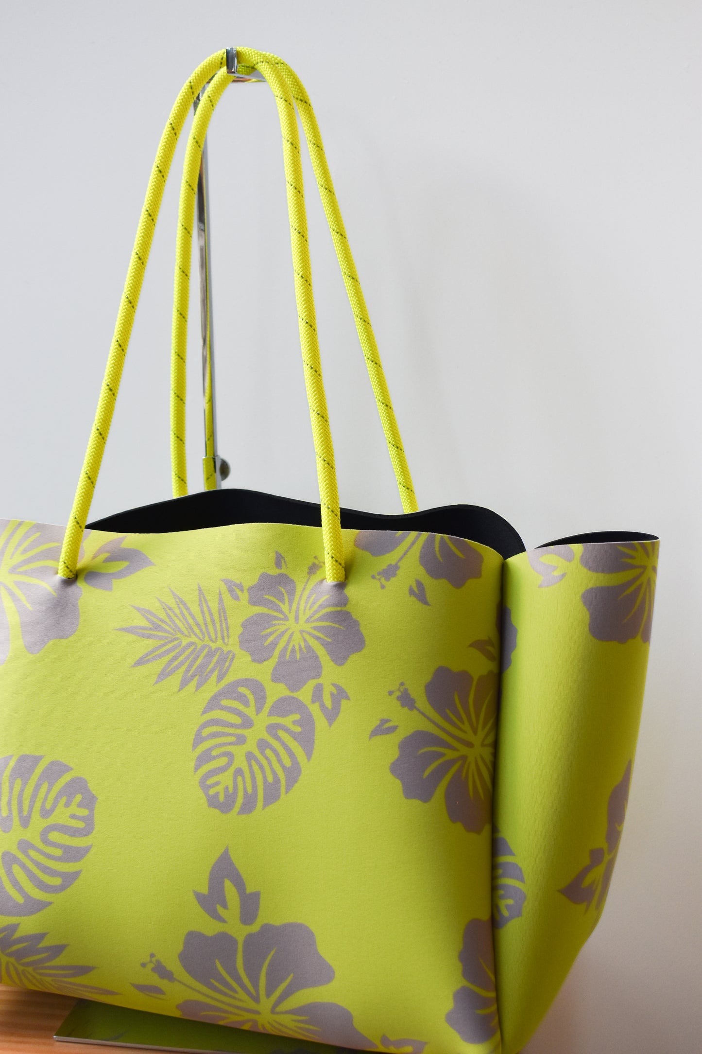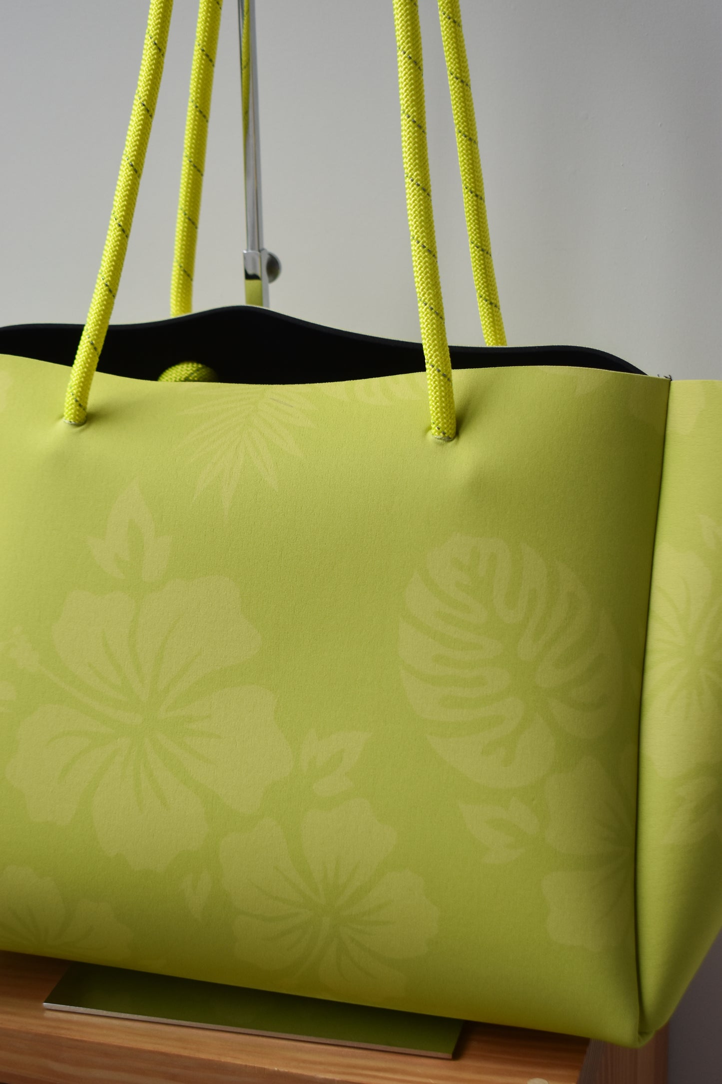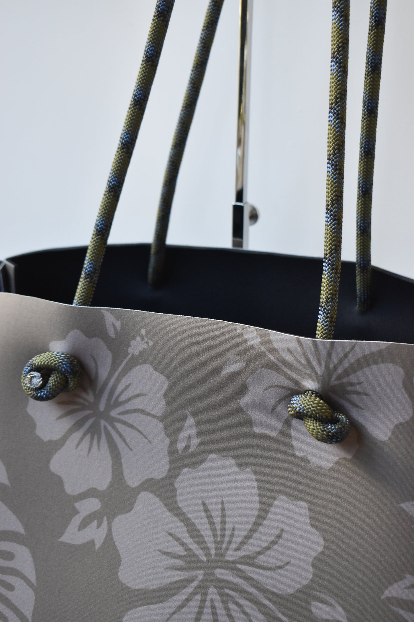 Great travel bag, diaper, beach and just everyday "go-to" bag. Adjustable straps (knotted), golden 1/2 inch grommets. Can be worn as a shoulder or elbow bag. All edges are "raw".