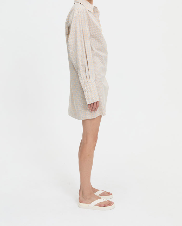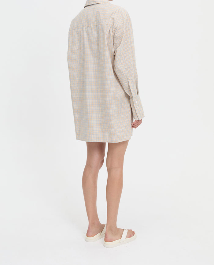 The Isley Dress in Cream brings effortless structure to an easy, wearable silhouette. Designed with a relaxed fit and subtle wrap-style panel through the skirt, it drapes softly while creating gentle movement and shape. Finished in a tonal cream check, it’s an understated piece that works equally well styled loose, belted, or layered through the seasons.