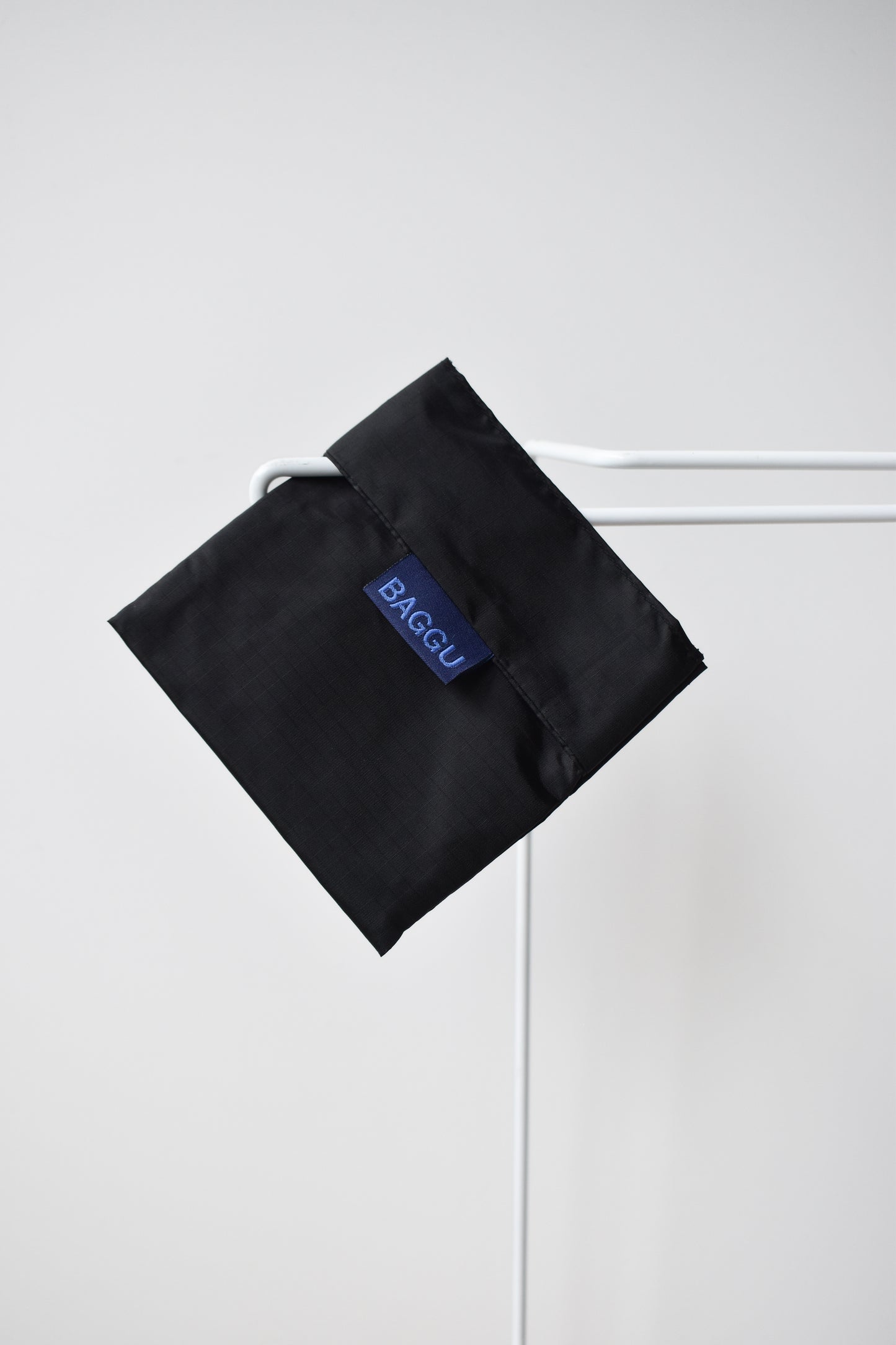 Holds 2–3 plastic grocery bags worth of stuff. Folds into a flat 5" × 5" pouch. Holds 50 lbs. Made from 40% recycled nylon sourced from pre-consumer waste.