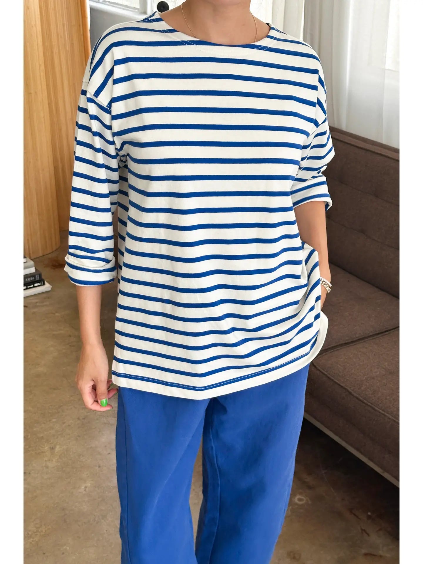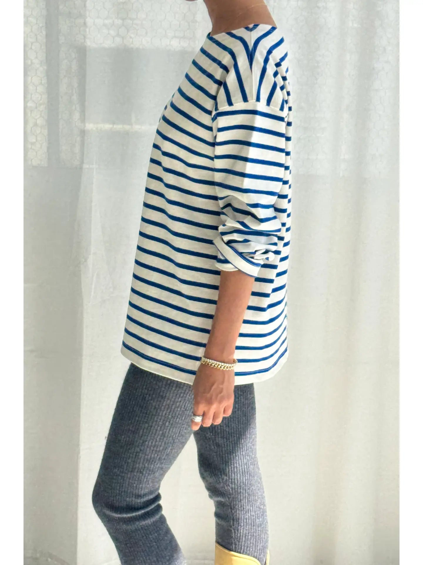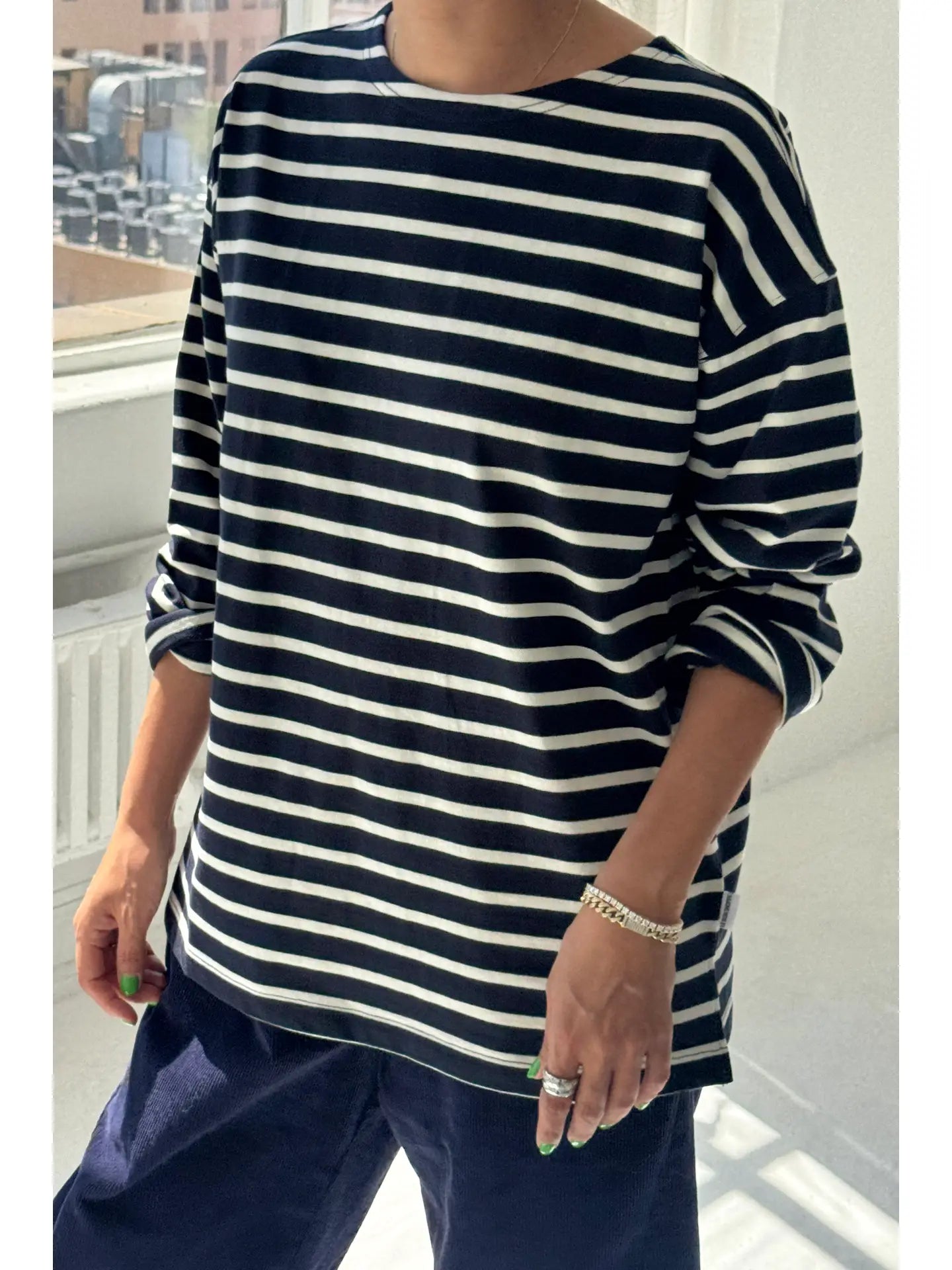Add a touch of Parisian flair to your wardrobe. The Marseille Top takes inspiration from the timeless Breton stripe uniform, featuring a classic round neckline and an oversized, full-length fit that gently sweeps the hips. Crafted from durable, heavyweight cotton, it offers structure without sacrificing softness, making it an ideal choice for both elevated and casual looks.