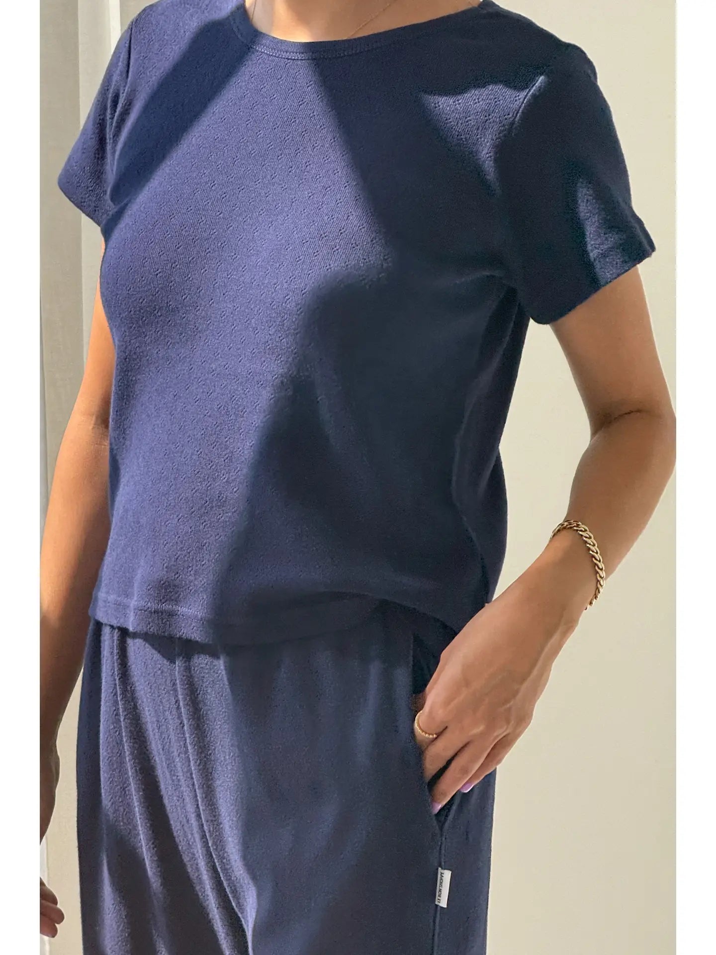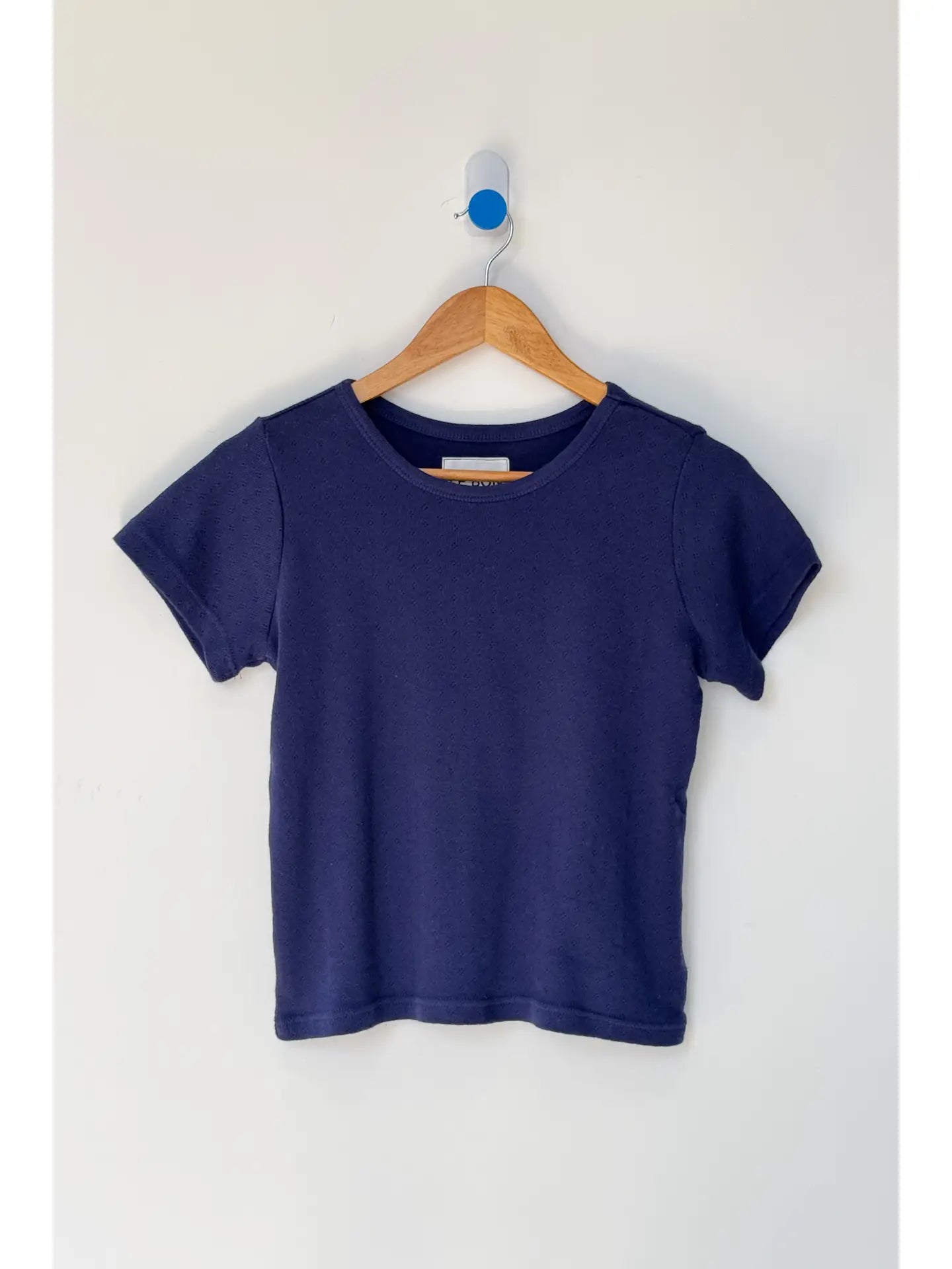 A dreamy take on the everyday tee. The Pointelle Babe Tee is made from ultra-soft cotton pointelle — breathable and just the right weight for an ideal drape. With a timeless crew neckline, classic short sleeves, and a subtly cropped length, it fits like our beloved Little Boy Tee. Feminine yet effortless, it's a versatile staple designed to move with you through every season.
